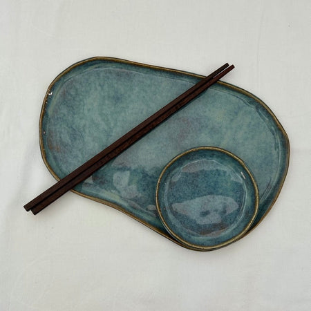 Sold Out Quick Shop Handmade Ceramic Free Form Plate and Dipping Sauce Set - Dusty Blue $50.00 Quick Shop