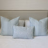 Freshen up your bedding with this pair of soft pale blue animal print European cushion covers. Such a calming colour.