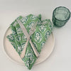 Block printed napkins in green floral