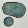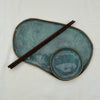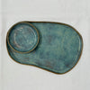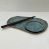 Handmade Ceramic Free Form Plate and Dipping Sauce Set - Dusty Blue